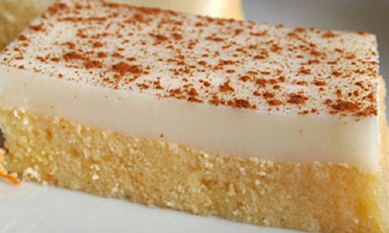 Από το γάλα κρατάμε περίπου ¾ κούπας και διαλύουμε μέσα το νισεστέ. Το υπόλοιπο το βάζουμε με τη ζάχαρη στη φωτιά. Ανακατεύουμε να λιώσει η ζάχαρη και μετά το αφήνουμε να κάψει. Στο καυτό γάλα προσθέτουμε ανακατεύοντας το γάλα με το διαλυμένο νισεστέ. Συνεχίζουμε το βράσιμο, ανακατεύοντας, μέχρι να πήξει η κρέμα. Απλώνουμε την κρέμα πάνω στο σιροπιασμένο γλυκό και αφήνουμε να κρυώσει. Αν θέλουμε πασπαλίζουμε με τριμμένη κανέλα. Πριν από το σερβίρισμα το κόβουμε σε ορθογώνια κομμάτια.