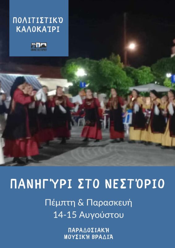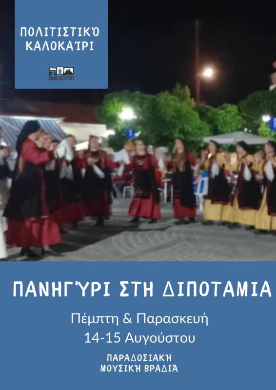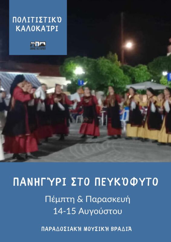 Το πολιτιστικό μας καλοκαίρι συνεχίζεται με την κορύφωση του παραδοσιακού γλεντιού τον δεκαπενταύγουστο. Ελάτε να ανταμώσουμε και να χορέψουμε με αγαπημένες μουσικές στις όμορφες πλατείες μας!
