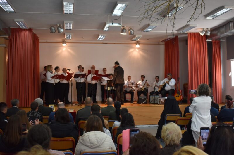 Μια ξεχωριστή στιγμή της εκδήλωσης αποτέλεσε η εμφάνιση της Χορωδίας της Σχολής Βυζαντινής Εκκλησιαστικής και Παραδοσιακής Μουσικής της Ιεράς Μητροπόλεως Καστοριάς «Ο Άγιος Μηνάς», η οποία συγκίνησε το κοινό με την ερμηνεία τραγουδιών αφιερωμένων στους ήρωες και τους αγώνες τους.