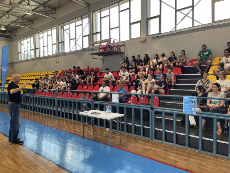 Η εκδήλωση έγινε στο κλειστό γυμναστήριο Καστοριάς με τη συμμετοχή αθλητών ηλικιών 12-18 ετών, προπονητών και γονέων του συλλόγου μας. Ομιλητής στην ημερίδα και υπεύθυνος του προγράμματος, που πραγματοποιείται με μεγάλη επιτυχία σε όλη την Ελλάδα είναι ο διακεκριμένος αθλητικός ψυχολόγος Δρ. Νίκος Γεωργιάδης ο οποίος αναφέρθηκε σε πολλά θέματα της καθημερινότητας που αντιμετωπίζουν οι αθλητές, οι προπονητές αλλά και οι γονείς. Μεταξύ άλλων αναφέρθηκε λεπτομερώς στις σχέσεις εμπιστοσύνης που πρέπει να αναπτύσσονται μεταξύ αθλητών και προπονητή, στην αρμονική συνεργασία αθλητή-προπονητή-γονέα και στην ποιότητα & συγκέντρωση τόσο στο διάβασμα όσο και στην προπόνηση. Πολύ ενδιαφέρουσα ήταν η τοποθέτηση του σχετικά με την αυτογνωσία, την θέσπιση στόχων καθώς και για την καθημερινή οργάνωση ώστε να επιτευχθούν επιτυχώς οι στόχοι. Με τον τρόπο αυτό έδωσε τη συνταγή της επιτυχίας για την ψυχική υγεία των αθλητών και των γονέων, αναφερόμενος στους παράγοντες που συμβάλλουν τα μέγιστα στην απόδοση στον αθλητισμό αλλά και στα μαθήματα.