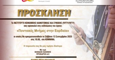 Νομός Καστοριάς Εκδηλώσεις: ”Ποντιακές μνήμες στην Εορδαία” Εκδηλώσεις: ”Ποντιακές μνήμες στην Εορδαία” Α. Μ.12/09/2025