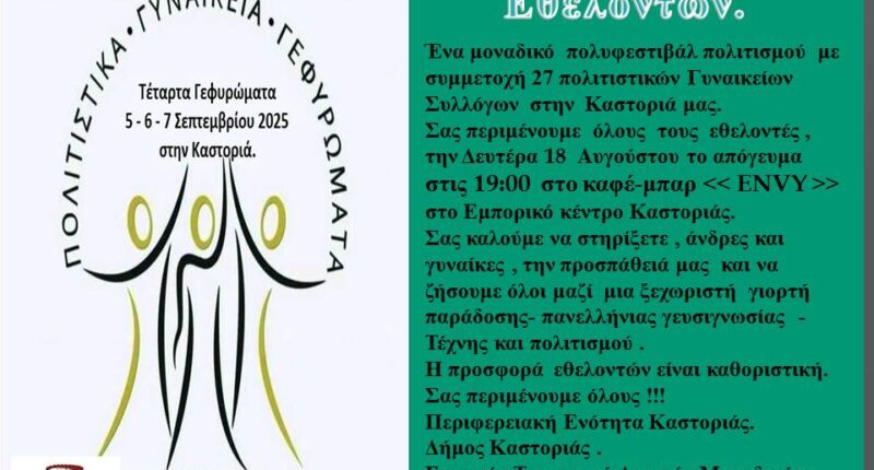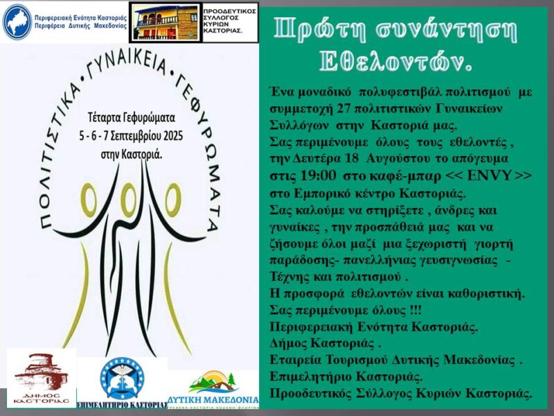 Σας περιμένουμε άνδρες και γυναίκες την Δευτέρα 18 Αυγούστου στις 19:00 στο καφέ – μπαρ ENVY !!! Εάν επιθυμείτε να είστε ΕΘΕΛΟΝΤΕΣ , αλλά απολαμβάνετε τις διακοπές σας, επικοινωνήστε μαζί μας στο τηλ:6980179306, ή μέσω viber .