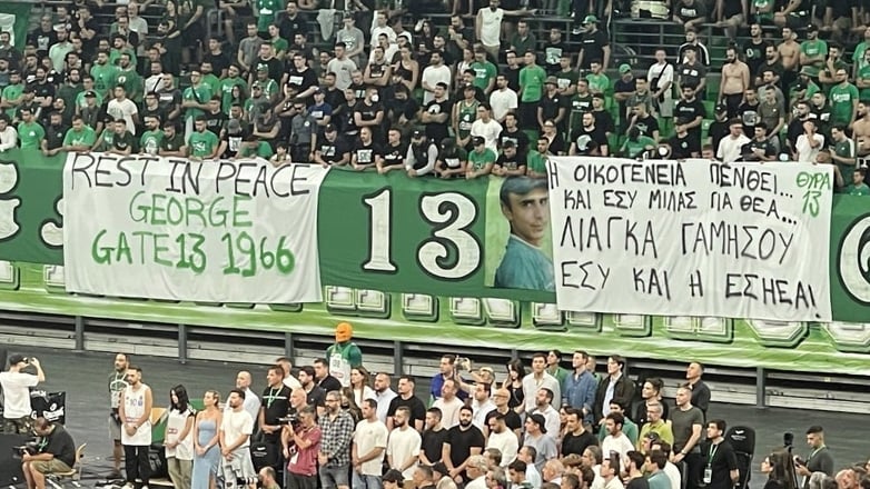 Παράλληλα, αμέσως μετά το ενός λεπτού σιγή, ακούστηκε εν χορώ και υβριστικό σύνθημα για τον γνωστό παρουσιαστή, από τις εξέδρες του γηπέδου.