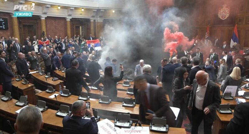 Ένταση επικράτησε στη Βουλή της Σερβίας σήμερα (4/3) όταν βουλευτές της αντιπολίτευσης άναψαν καπνογόνα, σε ένδειξη διαμαρτυρίας για τις κυβερνητικές πολιτικές και σε υποστήριξη των φοιτητών που διαμαρτύρονται.