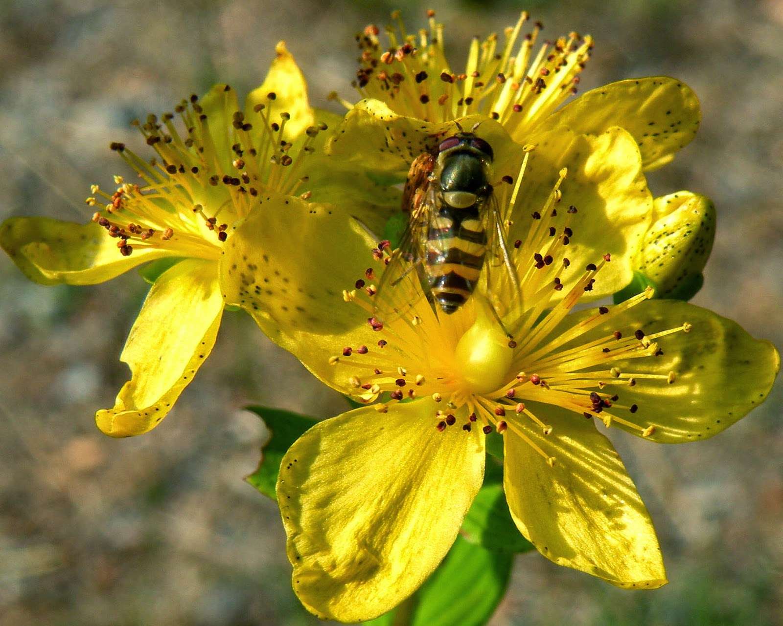 Πάνω στα χρυσοκίτρινα άνθη του, τα οποία συγκεντρώνονται στις κορυφές των βλαστών του μπορεί κανείς να δει διάσπαρτα τα μικροσκοπικά ημιδιαφανή στίγματα που δίνουν την αίσθηση πως είναι διάτρητα.