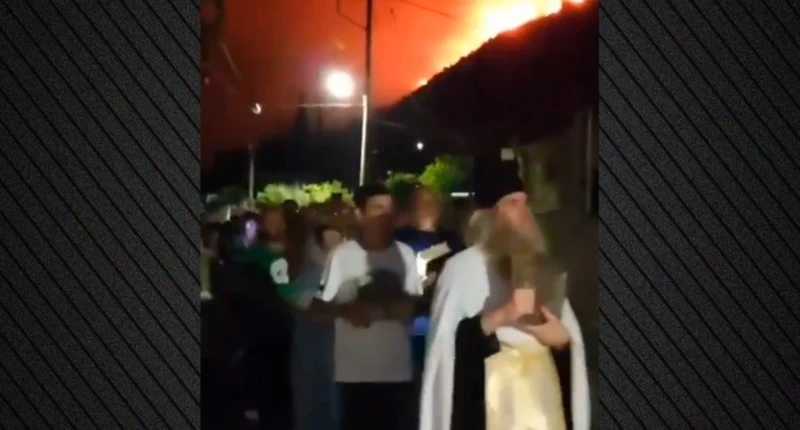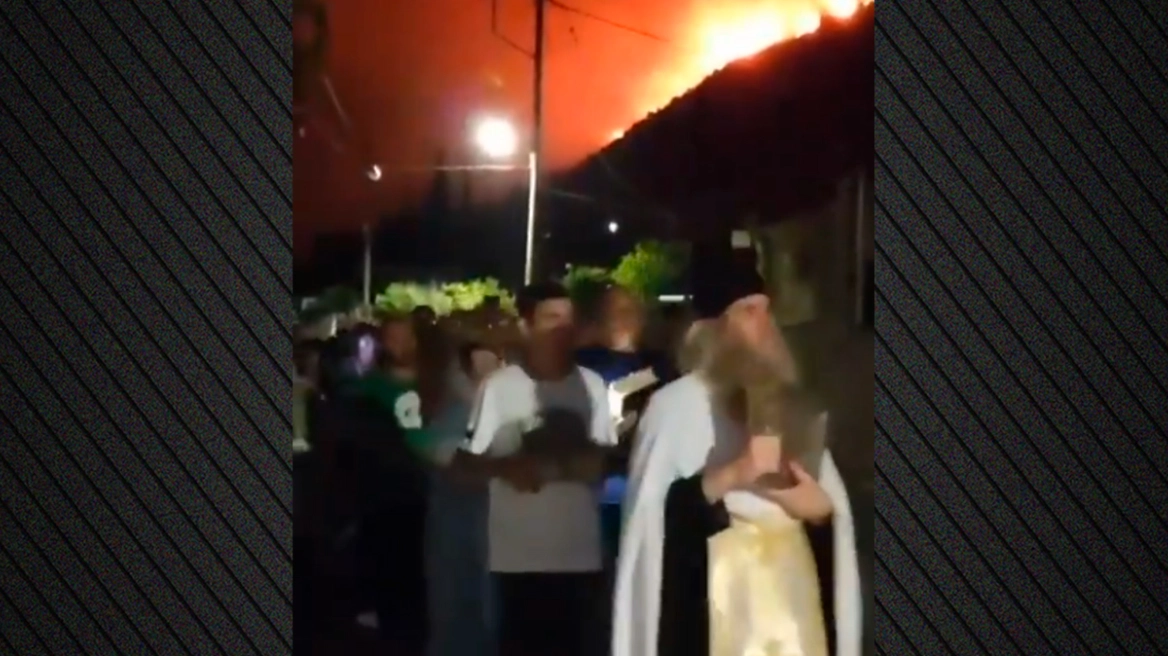 Κάτοικοι του χωριού προεξάρχοντος του ιερέα βγήκαν στους δρόμους κρατώντας ιερές εικόνες και λείψανα προσευχόμενοι για να μπει τέλος στον πύρινο εφιάλτη.