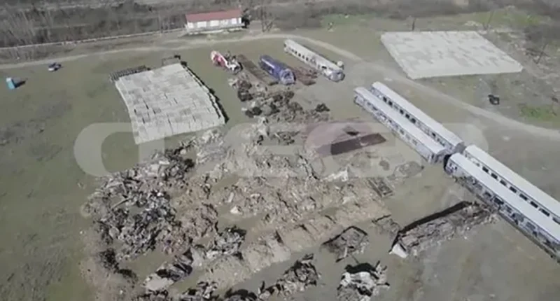 Σε έναν χώρο ιδιοκτησίας του ΟΣΕ έχουν μεταφερθεί τα βαγόνια και οι μηχανές τόσο της επιβατικής αμαξοστοιχίας όσο και του εμπορικού τρένου που ενεπλάκησαν στη σύγκρουση τρένων στα Τέμπη.