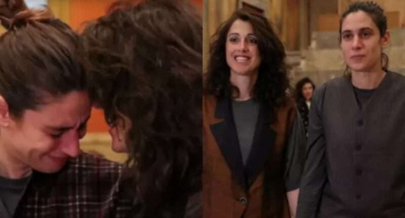 Όπως μεταδίδει το διεθνές πρακτορείο, μετά τους όρκους, το ζευγάρι αγκαλιάστηκε και φιλήθηκε, ενώ οι καλεσμένοι τους ξέσπασαν σε χειροκροτήματα. Μάλιστα, η Δανάη Δεληγεώργη άρχισε να κλαίει. «Συγχαρητήρια σε αυτή τη χώρα», ανέφερε το ζευγάρι.