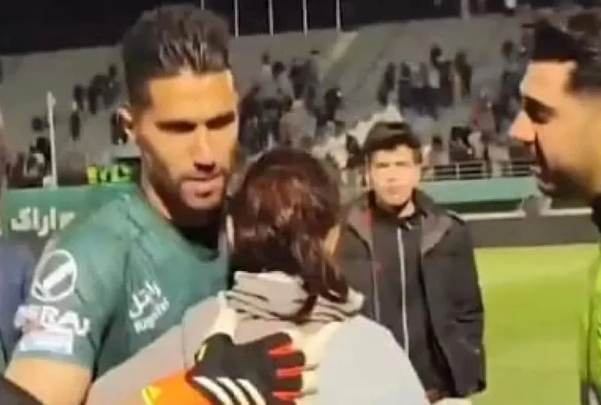 Η αθώα αγκαλιά ενός Ιρανού τερματοφύλακα σε μια γυναίκα που εισέβαλε στον αγωνιστικό χώρο μετά το φινάλε του αγώνα της Εστεγκλάλ με την Αράκ για το πρωτάθλημα Ιράν, έβαλε σε μπελάδες τον διεθνή γκολκίπερ, ο οποίος τιμωρήθηκε!