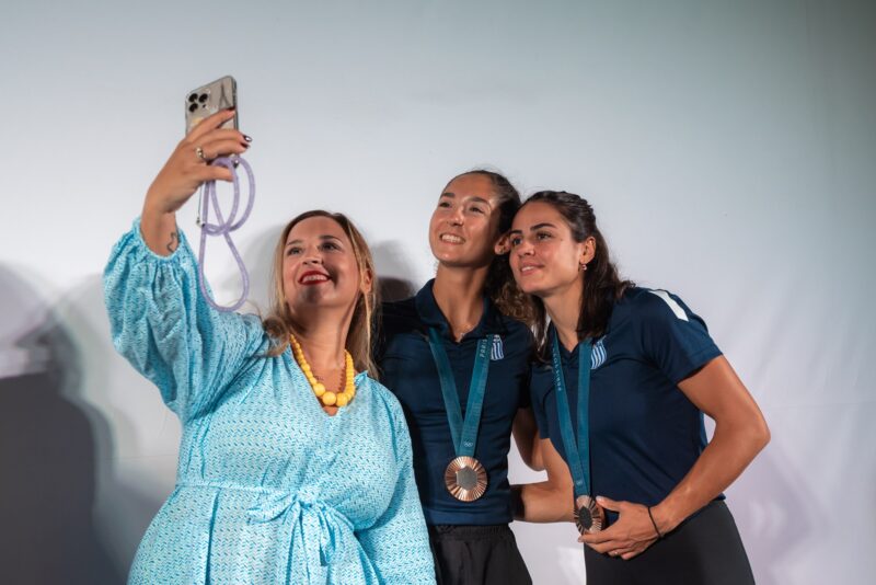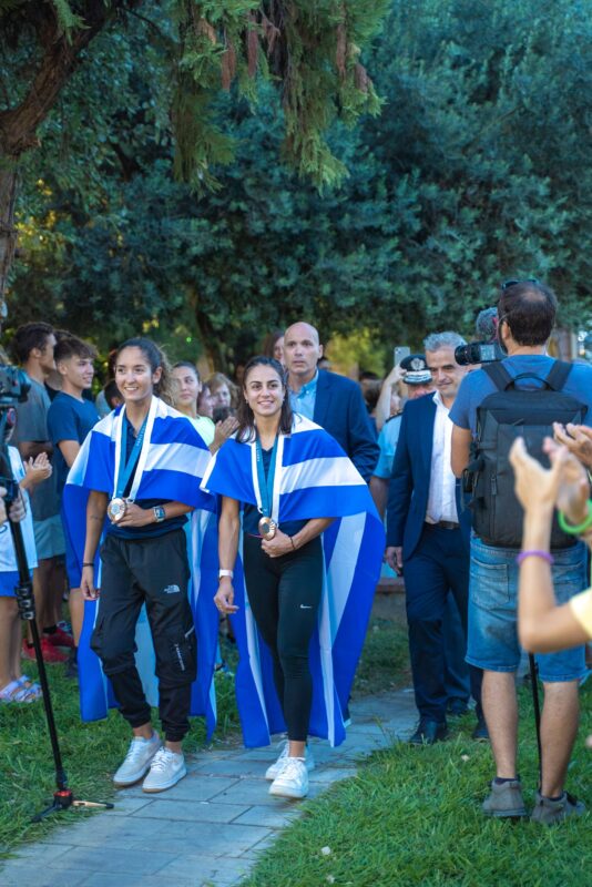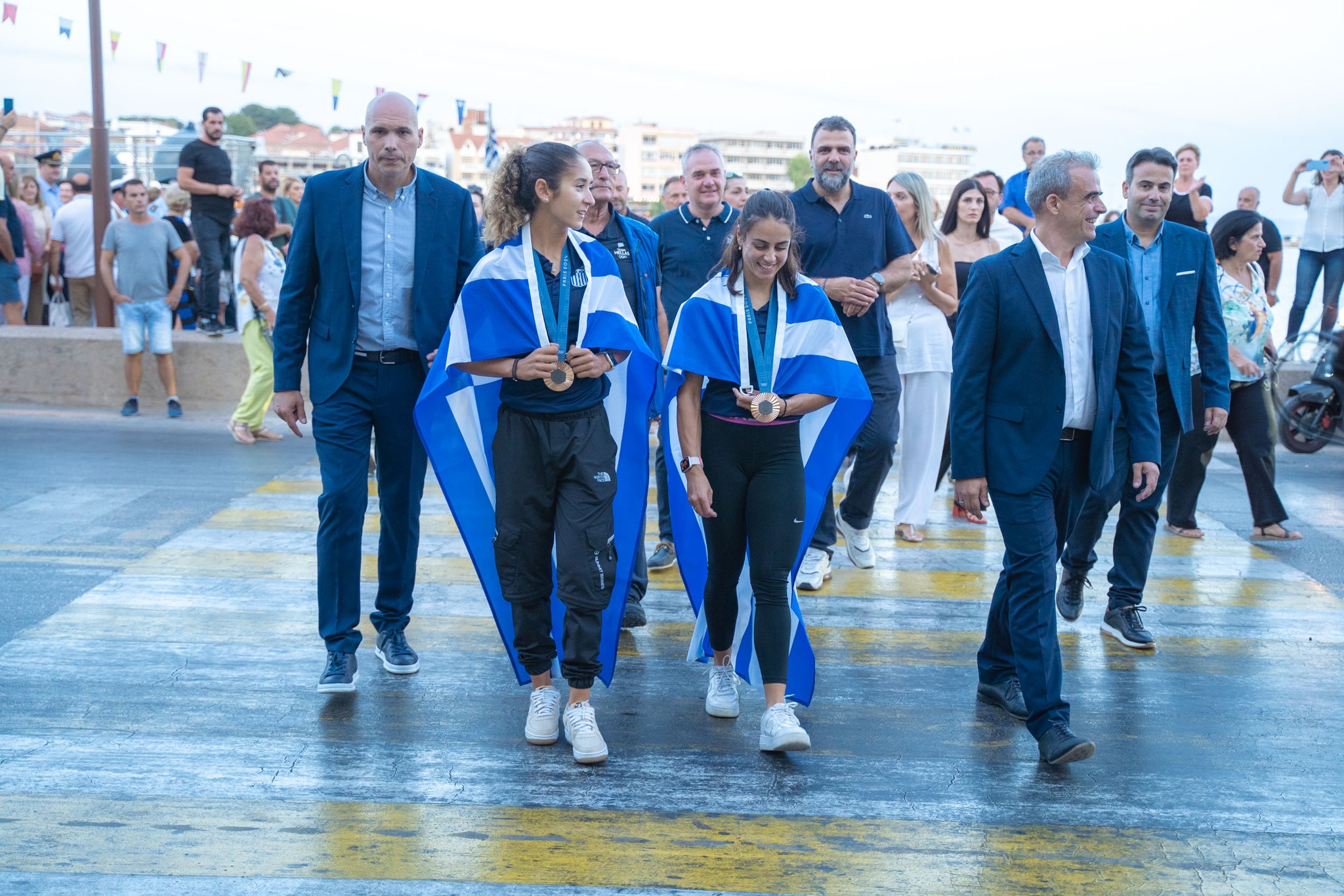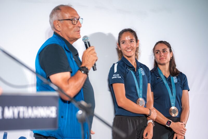 Ήταν μεγάλη η χαρά μας, επίσης, γιατί μαζί με εκείνη υποδεχθήκαμε την Ολυμπιονίκη, συναθλήτριά της Ζωή Φίτσιου, όπως και τον ομοσπονδιακό προπονητή της Εθνικής Ομάδας Κωπηλασίας κ. Τζιάνι Ποστιλιόνε, που τους συνόδευε ο Πρόεδρος της Ελληνικής Κωπηλατικής Ομοσπονδίας κ. Ιωάννης Βράμπας.