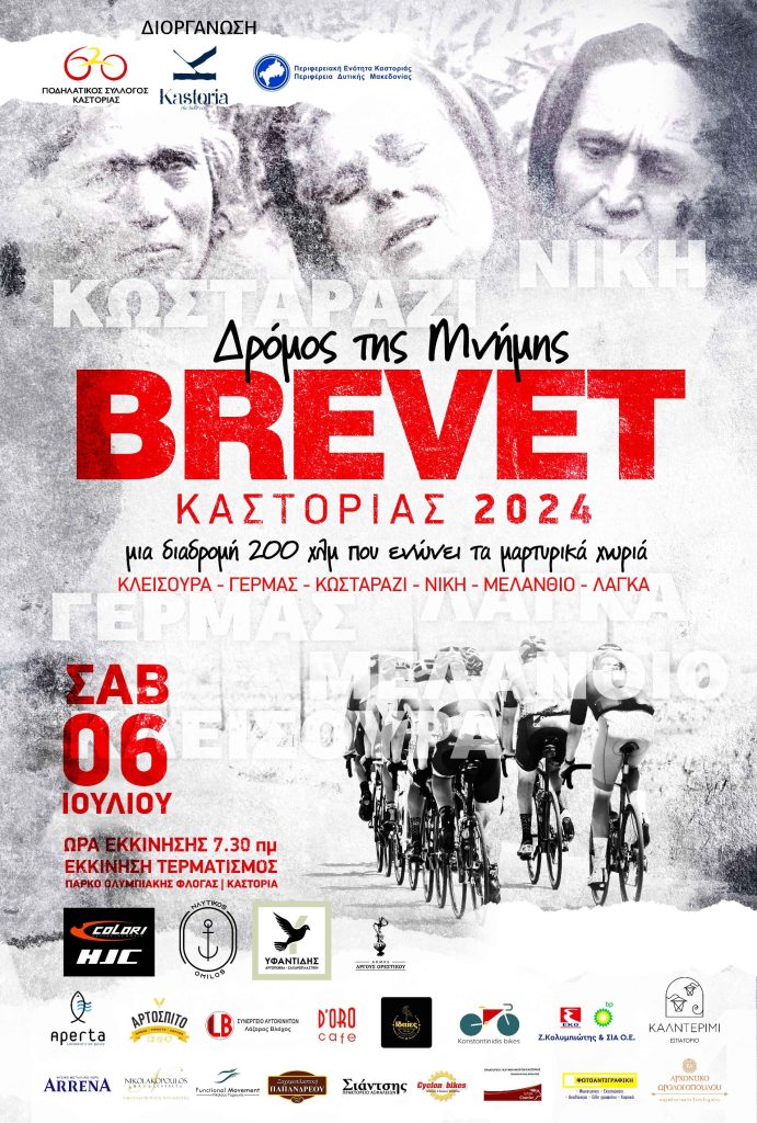 Το φετινό «Brevet Καστοριάς 2024», είναι αφιερωμένο στα «Μαρτυρικά χωριά», του Νομού μας – Κλεισούρα, Κωσταράζι, Γέρμας, Μελάνθιο, Νίκη, Λάγκα και ως φόρο τιμής, έχει την ονομασία «Δρόμος της Μνήμης».