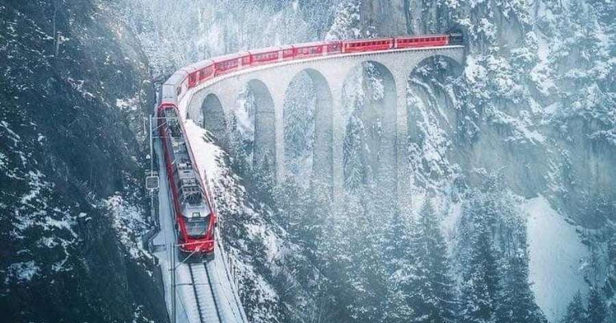 «Δεν έχω δει ποτέ ξανά τέτοια θέα όπως από αυτό το τρένο, το ταξίδι του είναι θεαματικό»«Το τρένο βγαίνει από το τούνελ και περνά κατευθείαν σε τοξωτή γέφυρα σε ύψος 65 μέτρων. Το λαμπερό κόκκινο χρώμα του τρένου ξεχωρίζει ανάμεσα στο ολόλευκο χιόνι και το μπλε του ουρανού». Ο Marco και ο Francesco αφιέρωσαν μία ημέρα ταξιδεύοντας με το τρένο αυτό που περνά από 55 τούνελ και διασχίζει 196 γέφυρες.