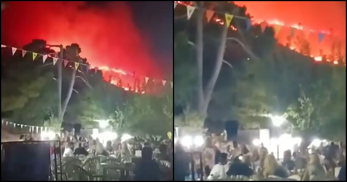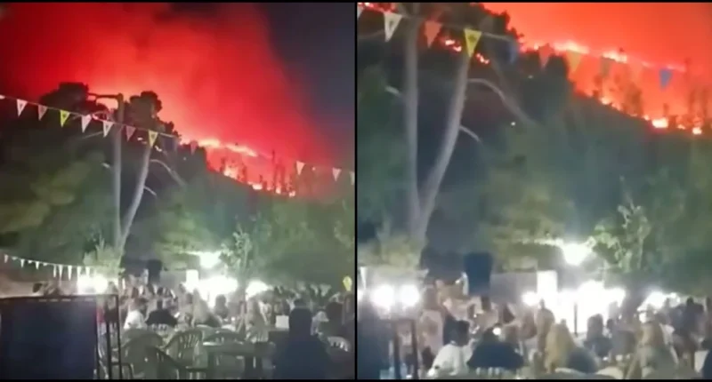 Όσο η φωτιά μαινόταν κάποιοι δεν πτοήθηκαν στιγμή και συνέχισαν να διασκεδάζουν σε πανηγύρι του χωριού με το μέτωπο της πύρινης λαίλαπας να είναι πάνω από τα κεφάλια τους.