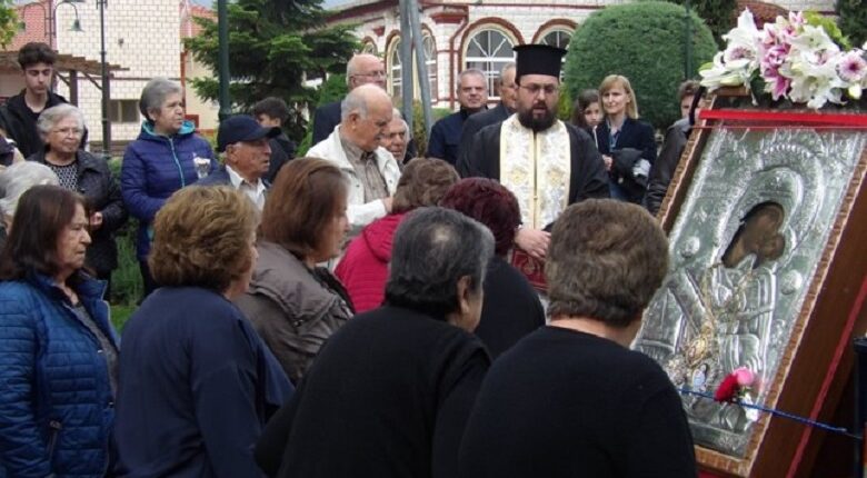 Έγινε δέηση και δεκάδες πιστοί προσκύνησαν την ιερή εικόνα.