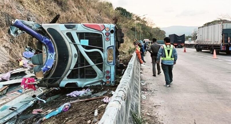 Το διώροφο λεωφορείο, που μετέφερε 49 ανθρώπους, ανάμεσά τους αντιπροσώπους των τοπικών Aρχών, βγήκε από τον δρόμο ενώ κατέβαινε πλαγιά στην επαρχία Πράχιν Μπουρί, ανατολικά της πρωτεύουσας Μπανγκόκ.