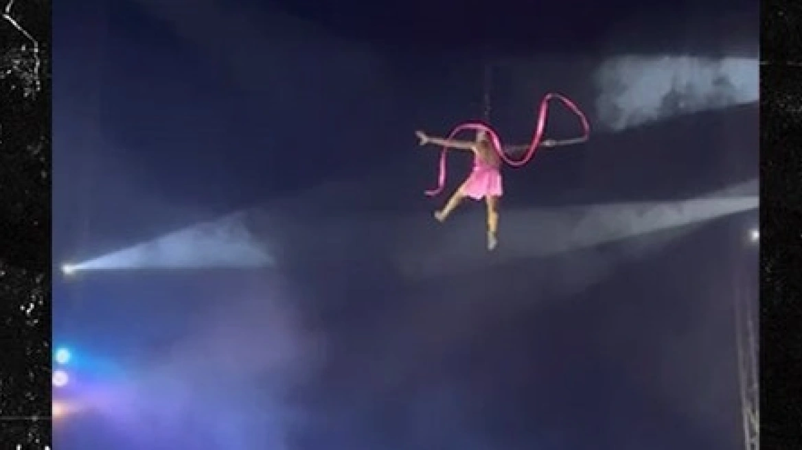 Στο βίντεο φαίνεται ξαφνικά να χαλαρώνει η πρόσδεση της Ντίας με αποτέλεσμα να πέσει στο έδαφος με θόρυβο σε παράσταση το περασμένο Σάββατο στο Ρίο Ντε Τζανέιρο.