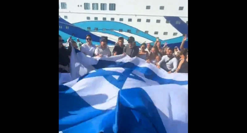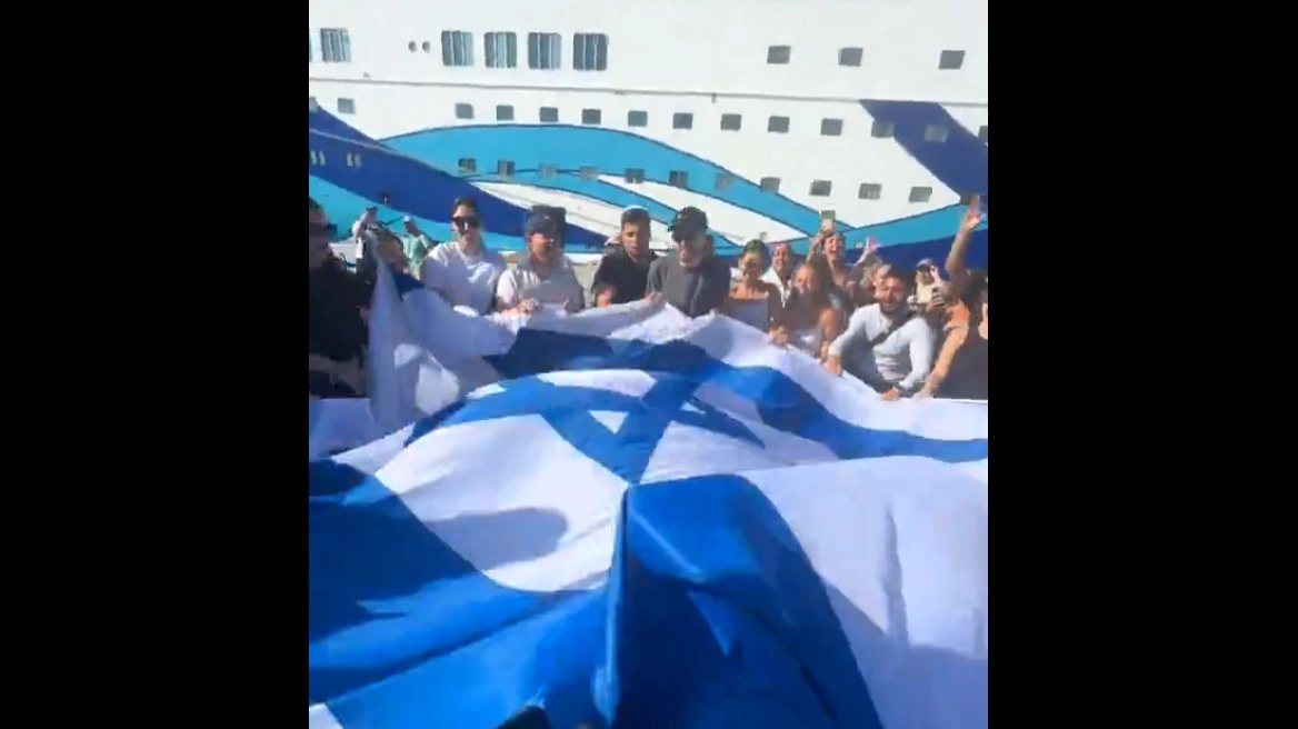 Οι Ισραηλινοί τουρίστες όταν κατέβηκαν στο λιμάνι της Ρόδου, άρχισαν να τραγουδούν, να χορεύουν και άνοιξαν μια μεγάλη σημαία της χώρας τους.