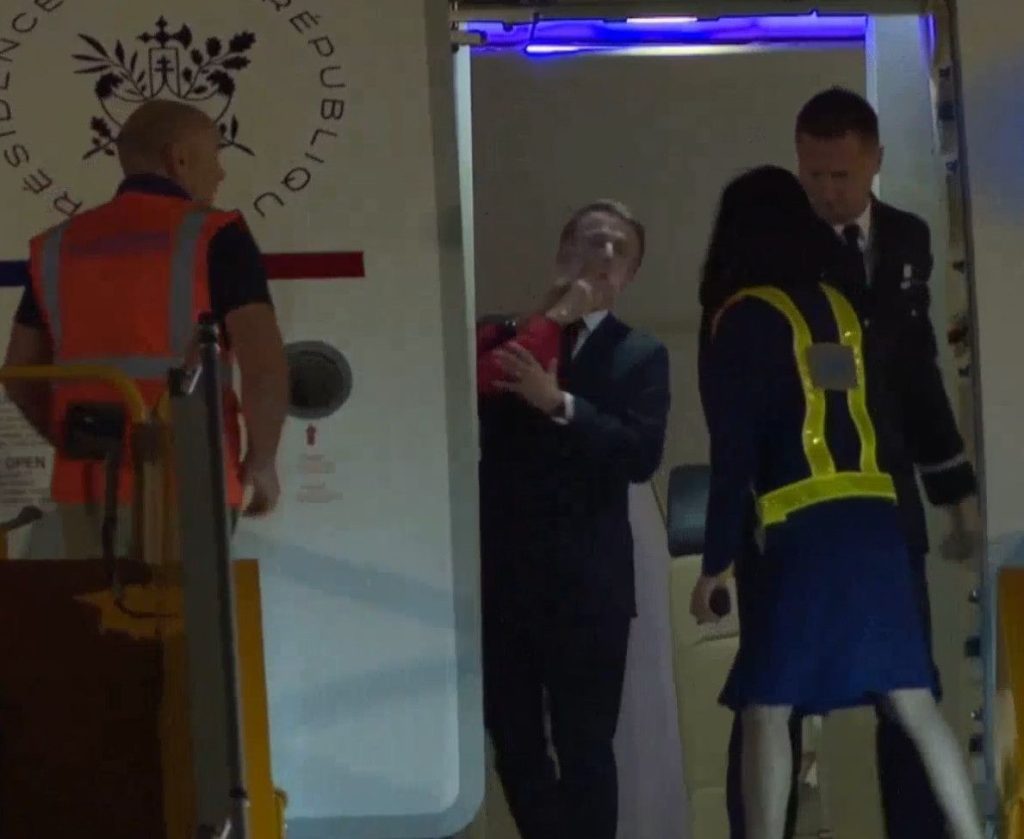 Στενός συνεργάτης του προέδρου μίλησε για έναν καβγά συνηθισμένο για τα ζευγάρια. Στη συνέχεια, το περιβάλλον του Μακρόν προχώρησε και σε νέα εκδοχή, σχολιάζοντας ότι ήταν μια στιγμή «που ο πρόεδρος και η σύζυγός του χαλάρωναν για τελευταία φορά πριν την έναρξη του ταξιδιού, παίζοντας».