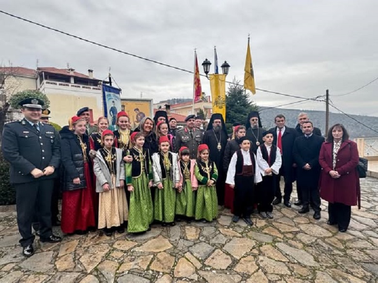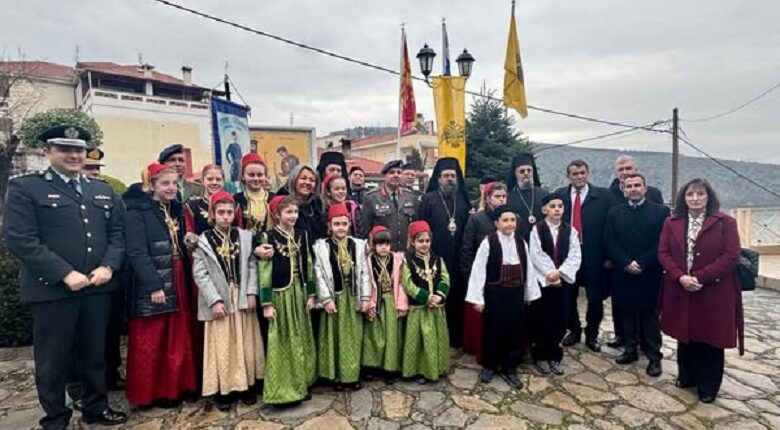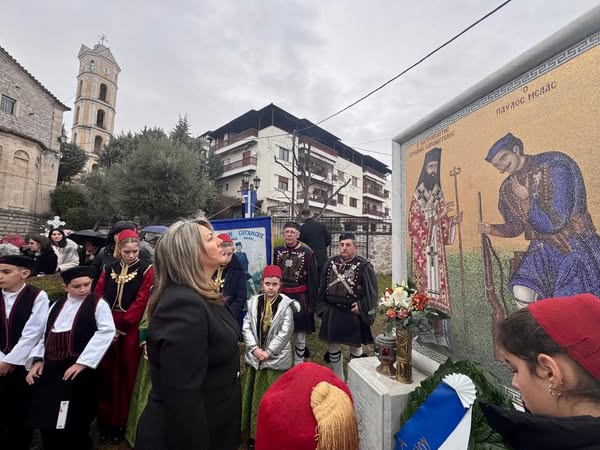 Στη συνέχεια, η κ. Αντωνίου κατέθεσε στεφάνι στην τελετή που πραγματοποιήθηκε στο ψηφιδωτό μνημείο του Γερμανού Καραβαγγέλη στον περίβολο του Επισκοπείου, όπου βρίσκονται ευλαβώς τοποθετημένα τα οστά του και ο ίδιος παριστάνεται ευλογών τον Ήρωα Μακεδονομάχο Παύλο Μελά.