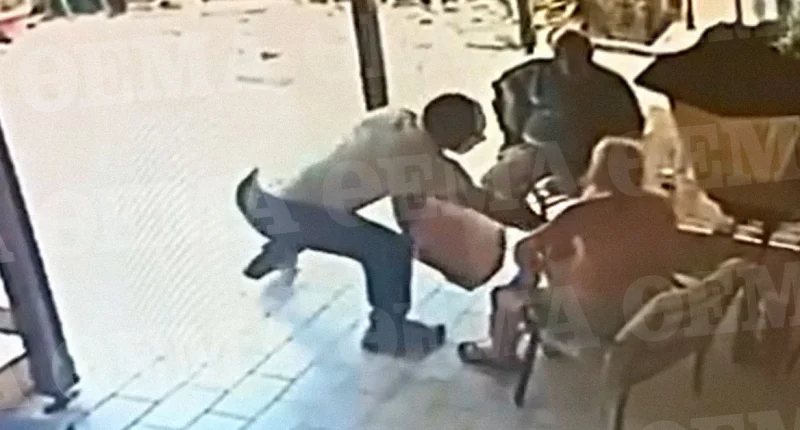 Όπως φαίνεται στο βίντεο, ο ηλικιωμένος καθόταν με ένα άλλο άνδρα στην αυλή του και μιλούσαν, όταν ξαφνικά ο Ρομά μπήκε μέσα και κρατώντας μια σακούλα, φαίνεται να του ζήτησε κάτι.